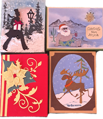 Come and make the Season Bright by making a variety of at least ten Christmas Cards. The paper is cut and ready for you to fold, die cut, place ribbon, or other things on. Put them in a envelope and send them on there way.